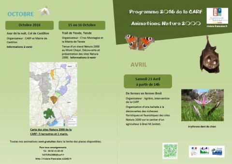 04/04/2016 Programme d'animation 2016 Voici les animations 2016 Venez participer aux animations proposées par la carf et découvrir les richesses des sites Natura 2000. programme_animations_2016.pdf Retour à la liste